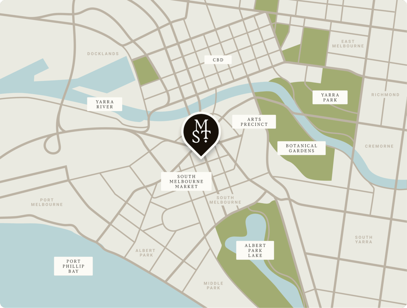 “South Melbourne is one of the city’s most vibrant corridors of food, drink and activity. It’s home to the bustling South Melbourne Market, and blossoms in the warmer seasons as the tight-knit community opens its doors and spills onto the streets between Southbank and the grassy expanses of Albert Park.”Broadsheet, South Melbourne South Melbourne Market